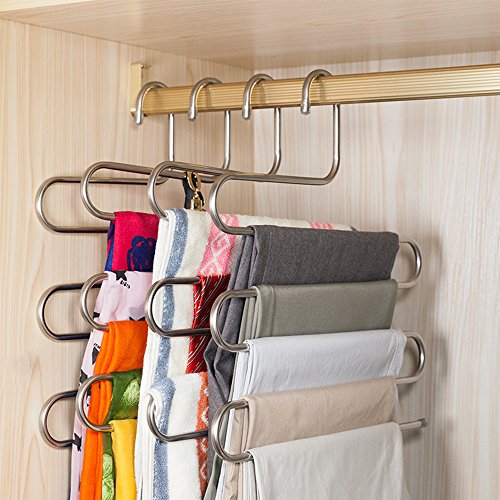 -. Binding : Kitchen -. Brand : beegod -. Feature : SAVE YOUR CLOSET SPACE - There are 5 layers for each rack to save the space in your closet that offer you more space to storage clothes / PROTECT CLOTHES- make Clothes Pants Jeans Scarf Tie be organized on the neat and tidy / Durable - The hangers are made of premium stainless steel which is hardwearing metal, longlasting material that can be used for years. It will never rust and or deformed due to great quality product. / S TYPE SHAPE - Fashion shape with no sharp edgest. Compatible with all kinds of clothes, keep your wardrobe clean and orderly / We do look forward to your satisfaction of our product. You would enjoy a 30-day money back guarantee -. IsAutographed : 0 -. Label : beegod -. Manufacturer : beegod -. MPN : EM-BG-PANTSF -. PartNumber : EM-BG-PANTSF -. ProductGroup : Home -. ProductTypeName : HOME -. Publisher : beegod -. Studio : beegod -. Title : Stainless Steel Hanger, beegod S-shape S-type 5 Layers Multi-Purpose Hangers Storage Rack for Clothes Pants Jeans Scarf Tie