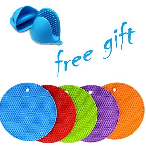 5 X Hot Pot Holders and Oven Mitts Silicone Trivet Set, Multipurpose Kitchen Utensils, Spoon Rest, Hot Pads, Tableware Insulation Trivets Pots and pans Mat, Non-slip, Heat Resistant, Flexible.