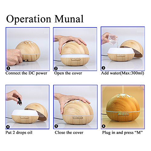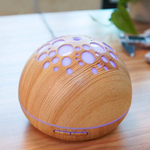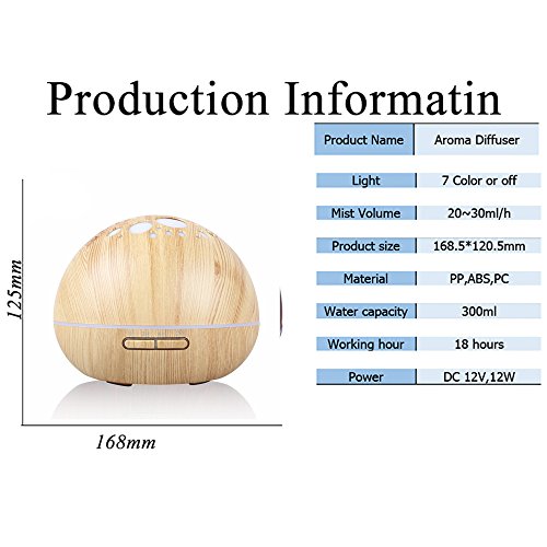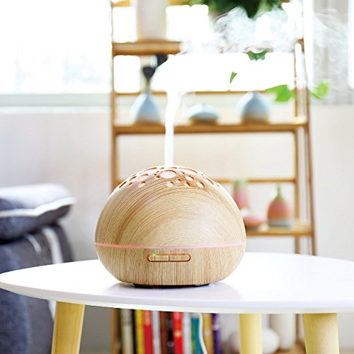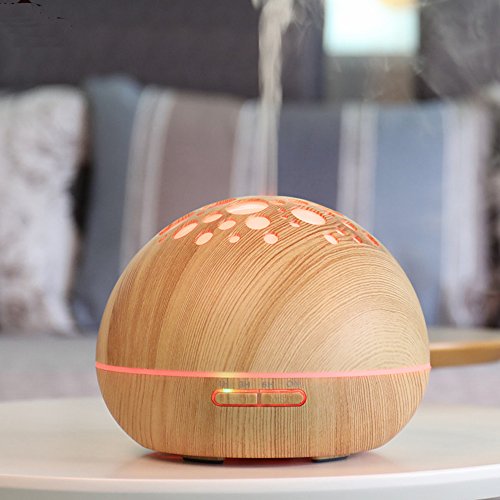 Peerdeer Air Aroma Humidifier 300ml 7 Colors Changing Electric Aromatherapy Household Mist Maker Essential Oil Aroma Diffuser (Light wood)