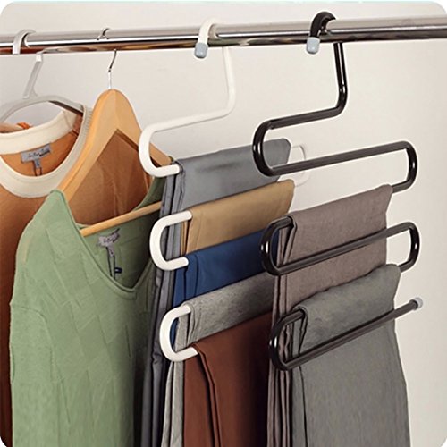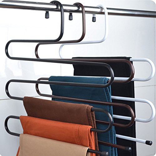 -. Title : S-shape Stainless Steel Hanger with 5 Layer for Jeans Trousers Space Saver Storage Rack Set of 3