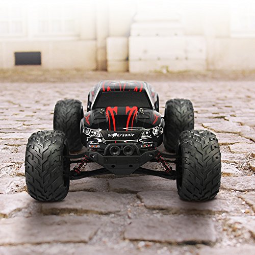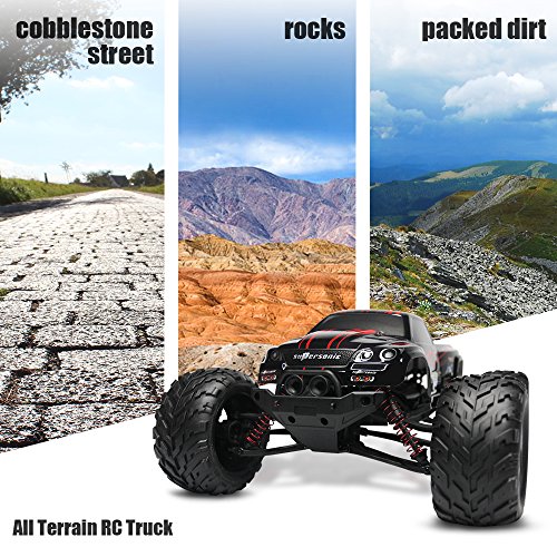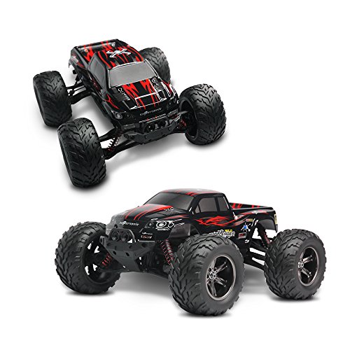 Product DescriptionSpecificationColor: RedTransmitter battery: 2 * 1.5V AA batteries (not included)Battery Power: 9.6V 800MAH li-on batteryCharging time: 120minsControl distance: about 80mRun time: about 5-10minsItem dimension: 32 * 26.5 * 15cmWhat included1 * Monster Truck1 * 2.4G Transmitter1 * Charger1 * Li-on Battery1 * English Manual1 * Screw driver1 * Hex wrench0