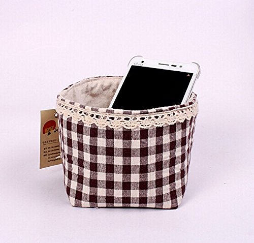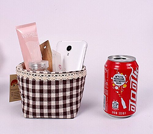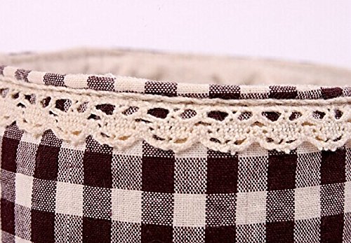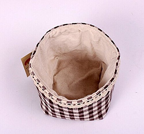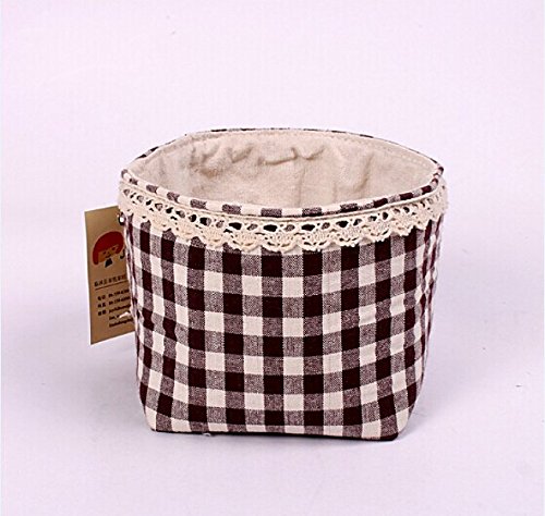 - Feature : This is 1 pcs Multi-function Storage Round Bucket / Material:Eco-friend Cotton Blend Linen Fabric with waterproof coating. / Size:10cm * 10cm (3.94" * 3.94") / Lovely Zakka Coffee Plaid Lacework