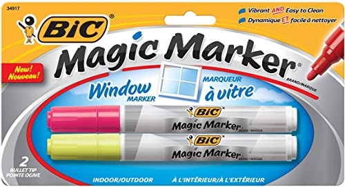 BIC MWTP21YPAST Magic Marker Brand Window Markers, Bullet, Yellow/Pink, 2/Pk (BICMWTP21YPAST)
