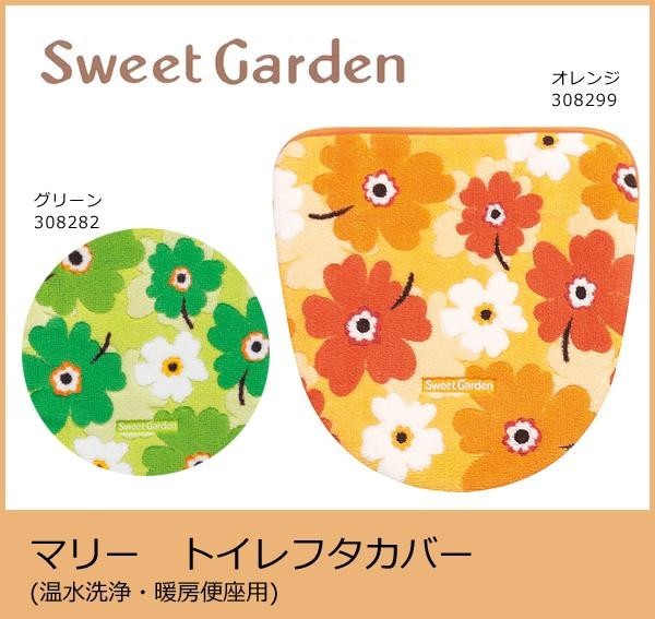 ビタミンカラーの生地に可愛らしいお花が描かれた明るいデザインの温水洗浄・暖房便座用トイレフタカバー♪