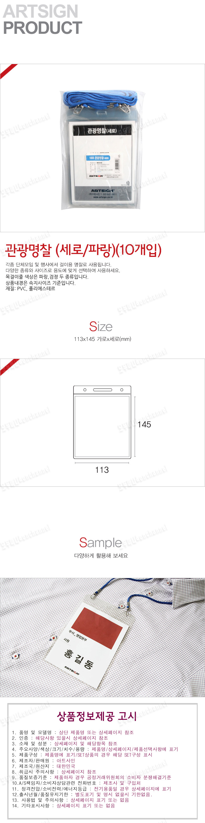 - 품명 및 모델명관광명찰(세로/파랑/113x145mm/10개입)