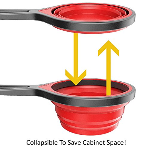 *USER & SPACE FRIENDLY DESIGN - Collapsible cups do not take up much space in your kitchen and each cup can be superated to use individually. Size is clearly engraved so you always know how much you are adding!
