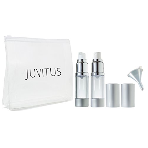 Includes 1 - 0.5 oz Airless Spray Bottle, 1 - 0.5 oz Airless Pump Bottle, 1 mini funnel, and 1 clear vinyl travel bag