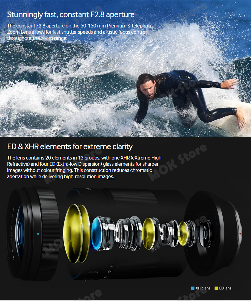 The constant F2.8 aperture on the 50-150 mm Premium S Telephoto Zoom Lens allows for fast shutter
