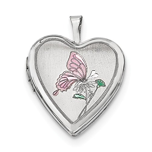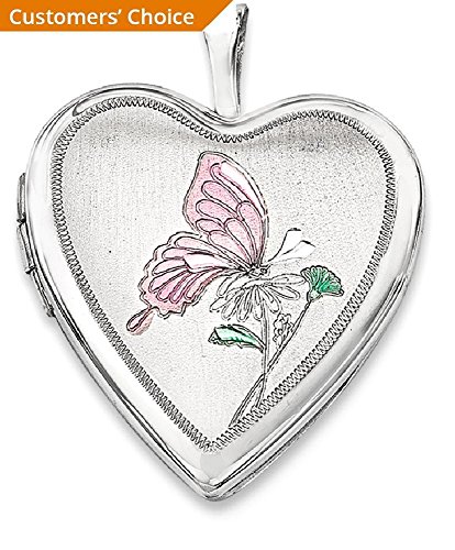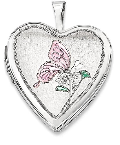 ICECARATS DESIGNER JEWELRY 925 STERLING SILVER 20MM ENAMELED BUTTERFLY HEART PHOTO PENDANT CHARM LOCKET CHAIN NECKLACE THAT HOLDS PICTURES