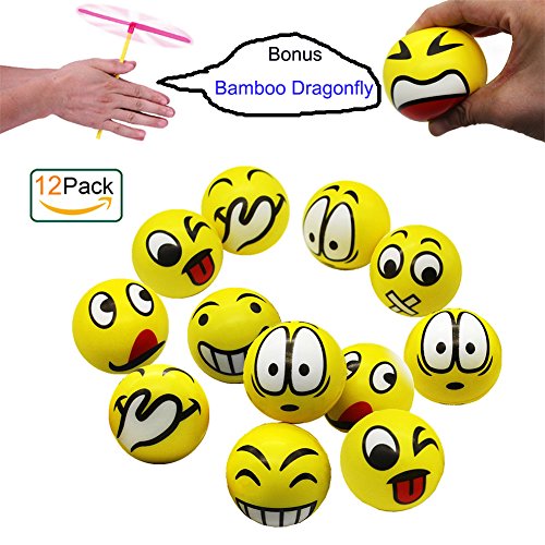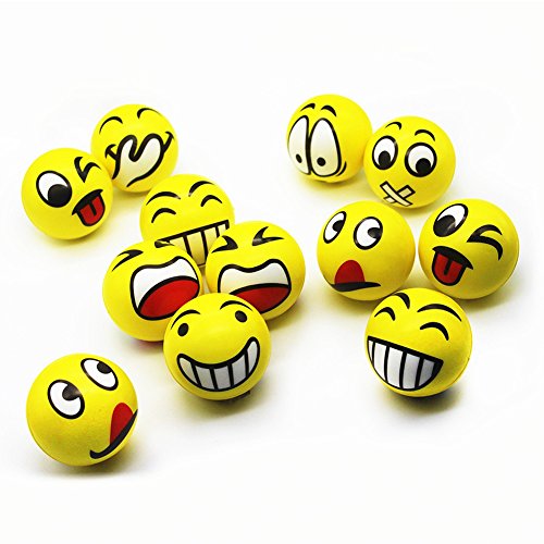 Funny Emoji Face Squeeze Stress Balls, Stress Relief Emotional Toy Ball Party Favors, 12 Pack, Random Emotion