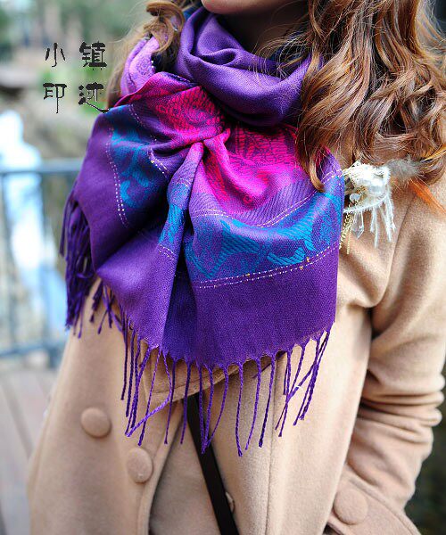 Description: This 100% cashmere scarf material, feel very soft, striped top part there is embroidery of sequins.