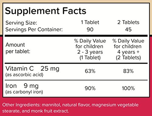Growth spurts, blood health and you know, kind of important things like delivering oxygen in the body-iron is the important mineral that supports this all. We made ours with Vitamin C to maximize its healthy powers, which then inspired us to create our all natural Oh-Oh-Oh Orange flavor. Gentle on the tummy + safer absorption. We use carbonyl iron instead of 'iron salts' (ferrous sulfate), which are known to cause tummy side effects. Our iron is absorbed more steadily which makes it safer and the preferred type for children supplementation. Too much of a good thing. There are reports that accidental iron overdose is the leading cause of childhood poisoning. Use common sense and keep yummy Melty Tabs out of reach of children.Feature