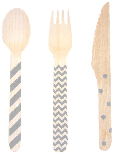 Dress My Cupcake Stamped Wooden Cutlery Set, Chevron/Striped/Polka Dot, Gray, 18-Pack