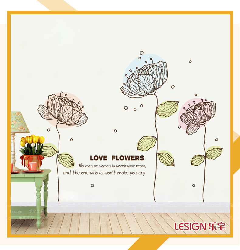 浪漫客厅沙发电视背景墙贴纸时尚卧室床头文艺自粘装饰品花朵贴画