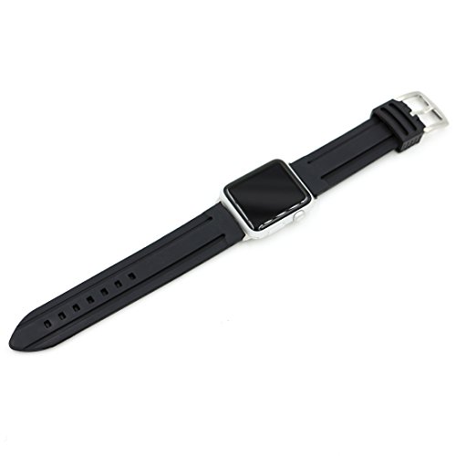 - Feature : Compatible with Apple Watch 2015 Released 38mm / 42mm only. / Well designed, engineered and manufactured from high quality synthetic rubber to fit 140-210mm wrists, Nice Touch Feeling & Stainless Steel Buckle. / Full access to all ports and buttons. / Precise cut holes to fit well for most wrist, Incredible fit and comfort for fitness lovers and everyday use. / No hassle, super easy to remove the old one and replace with this one.