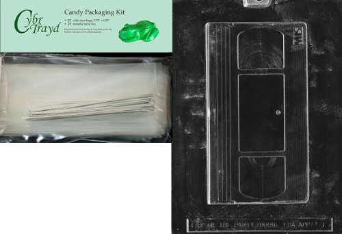 Cybrtrayd Video Cassette Miscellaneous Chocolate Candy Mold with Packaging Bundle of 25 Cello Bags, 25 Silver Twist Ties and Chocolate Molding Instructions
