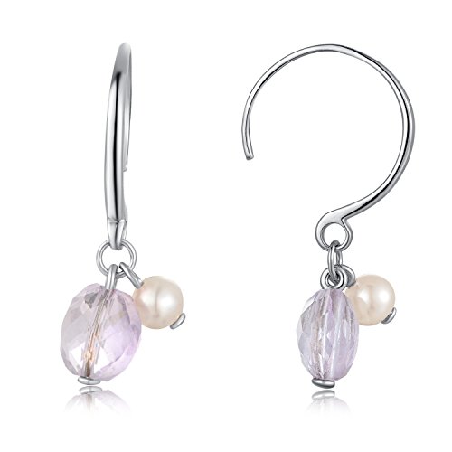 -. Title : MBLife 925 Sterling Silver Freshwater Cultured Pearl Amethyst Fishhook Earrings