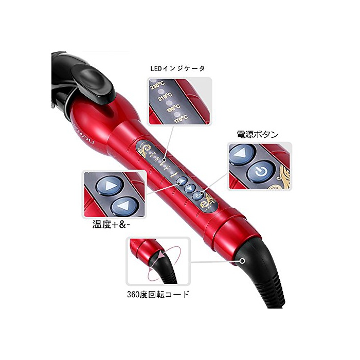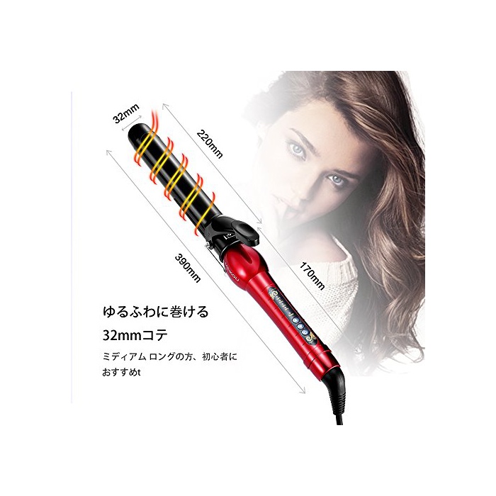 원본상품명: ヘアアイロン カル MEIKOU 22mm 25mm 28mm 32mm マイナスイオン プロ仕 170℃~230℃ 4段階度調節 海外 プロ仕 (32mm)