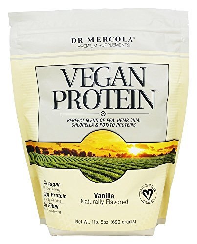 -. Binding : Health and Beauty -. Brand : Dr. Mercola -. EAN : 0783318978628 -. Feature : Dr Mercola Vegan Protein Powder is the perfect blend of high-quality plant proteins from Pea, h.e.m.p, Chia, Potato, and Golden Chlorella. This tasty protein is available in three flavors: Vanilla, Chocolate, and Sweet Cinnamon. / Vegan Protein Powder provides 12 grams of concentrated food protein in every serving, a FIVE-fiber blend, a FOUR-enzyme blend, and ZERO grams of sugar or artificial sweeteners/gluten. / Golden Chlorella High Protein is a patented microalgae powder that's a highly digestible protein source, a natural source of tocotrienols and tocopherols, and contains 18 amino acids, including ALL the essential amino acids. / Dr Mercola Vegan Protein Powder tastes delicious and offers an array of complimentary quality proteins, omega-3 fatty acids, enzymes, and fiber. This protein can help aid in post-workout recharge or boost your protein intake. / This unique 5-Fiber Blend includes: Acacia, Inulin, Bamboo, Pea, Apple. The 4-Enzyme Blend includes the digestive enzymes protease, amylase, and lipase, and the metabolic enzyme bromelain to help support digestion. -. IsAdultProduct : 0 -. Label : Dr. Mercola -. Manufacturer : Dr. Mercola -. MPN : 10077 -. NumberOfItems : 1 -. PackageQuantity : 1 -. PartNumber : 10077 -. ProductGroup : Health and Beauty -. ProductTypeName : HEALTH_PERSONAL_CARE -. Publisher : Dr. Mercola -. Size : 1 -. Studio : Dr. Mercola -. Title : Dr. Mercola Vegan Protein Vanilla -- 1 lb 5 oz -. UPC : 813006015356