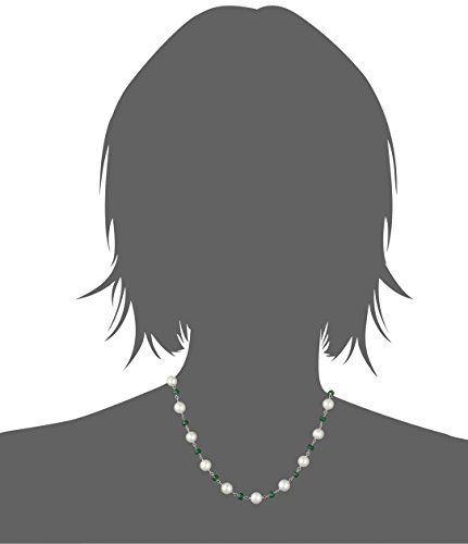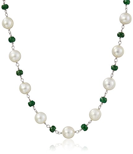 18-inch princess length strand necklace crafted from combination of white freshwater cultured pearls and simulated green emerald