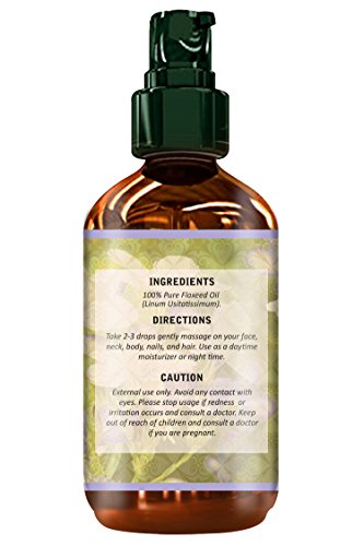 4 fl oz Flaxeed Oil- 100% Pure & Unrefined Virgin Oil - Natural Moisturizer for Face, Skin, Hair, Stretch Marks, Scars & Wrinkles