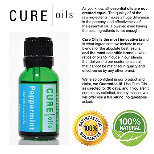 -. Feature : PEPPERMINT OIL BY CURE OILS: The Therapeutic Properties of Peppermint Oil are analgesic, anesthetic, antiseptic, antigalactagogue, antiphlogistic, antispasmodic, astringent, carminative, cephalic, cholagogue, cordial, decongestant, emmenagogue, expectorant, febrifuge, hepatic, nervine, stimulant, stomachic, sudorific, vasoconstrictor and vermifuge. Peppermint Essential Oil contains MENTHA PIPERITA which induces a cooling sensation,stimulate the mind, increase mental agility & focus. / HEALTH BENEFITS: Promotes healthy respiratory function and clear breathing aided in a multitude of health and lifestyle needs. The PEPPERMINT OIL can help relieve headaches, ease migraines and helps relieve from symp of cough, focus, dry cough, nausea, bad breath, indigestion, nasal congestion, concentration, respiratory illness, stomach problems. Ease spastic colon,sinus and chest congestion and boosts the digestive system,relieve skin irritation,itchiness & reduce skin redness. / INSECT & BUG REPELLANT: It is a natural insect repellent and helps to keep mice, spiders, ants, fleas, roaches and rodents away. Natural bug repellant. The scent of PEPPERMINT OIL has a calming effect on the mind, and used in combination with a few quiet minutes of deep breathing or meditation. PEPPERMINT OIL also prevents the spread of infection caused by a bug bite and controls the itching and inflammation often associated with bug bites. It natural deterrent against insects & bugs. / USED IN AROMATHERAPY : It can be used with your diffuser to keep your home and kitchen smelling fresh and its anti-bacterial properties make it great as an all-purpose cleaner.Alleviates Upset Stomach. It is also used for its soothing qualities on the digestive system. Peppermint oil is excellent for mental fatigue and depression, refreshing the spirit and stimulating mental agility and improving concentration.Relieve pain in toothache, aching feet, rheumatism, neuralgia and muscular pains. / RISK FREE GUARANTEE: We stand behind our oils and blends. If you're not happy, return any Cure Oils product within 30 days for a full refund. CURE OILS is dedicated to customer satisfaction. That is why we offer a 30 day 100% money back guarantee. If your purchase does not fulfill your needs for any reason, you can return your item for a full refund within 30 days of purchase. You also get Special Offers in our other products also. See below.