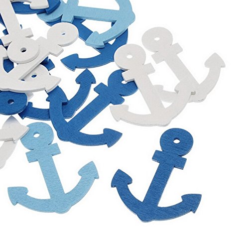 Yunko 50PCs Wooden Pendants Boat Anchor Shape Mixed Colors 60mm x47.8mm