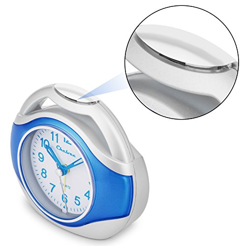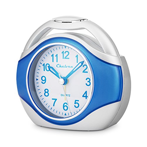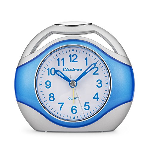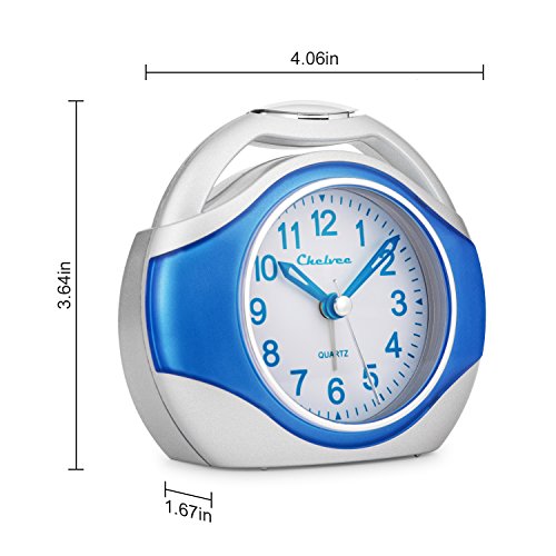 Alarm clock, Chelvee Portable Quartz Analog Alarm Clock for Kids and Traveler, Night Light, Snooze , Non-Ticking, AA Battery Powered (Blue)