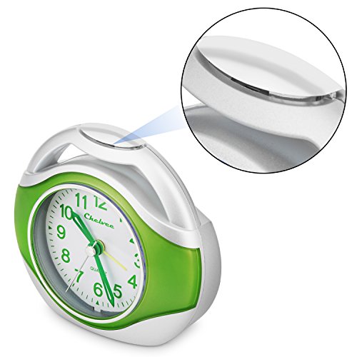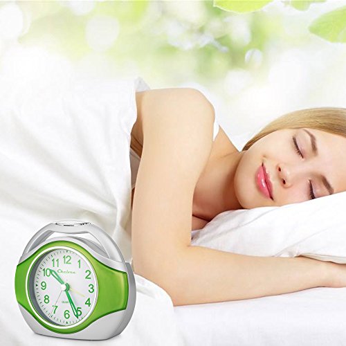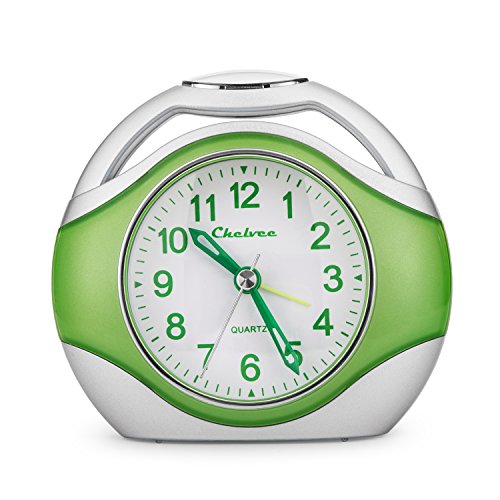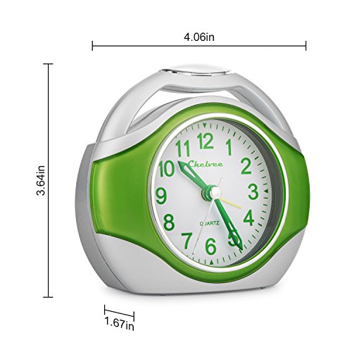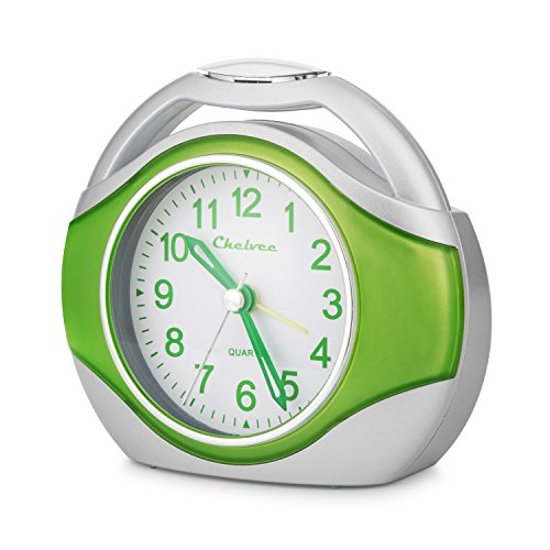 Alarm clock, Chelvee Portable Quartz Analog Alarm Clock for Kids and Traveler, Night Light, Snooze , Non-Ticking, AA Battery Powered (Green)