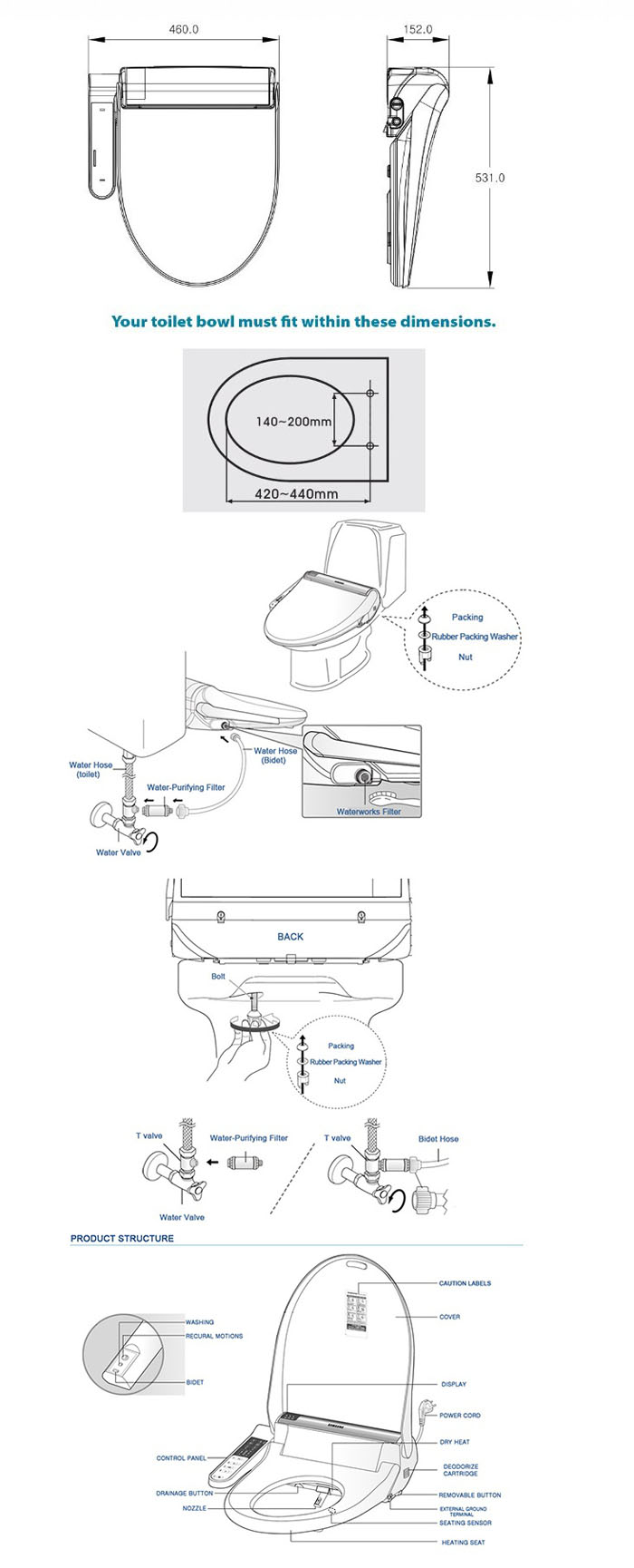 サムスンSBD-935Sデジタルトイレビデウォシュレット便座暖かい風4レベル温水220V&インストールする方法についての簡単な英語のマニュアル