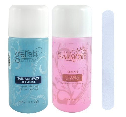 Studio : USA Publisher : USA Binding : Misc. Product Description Hand Nail Harmony Gelish Gel Cleanse Gel Cleanse will remove gel residue from Reveal UV Gel Gelish Soak Off Gel products. Use: Saturate a nail wipe with Gel Cleanse and wipe the surface of the artificial nail to remove gel residue. Hand Nail Harmony Gelish Soak Off Artificial Nail Remover For Soak Off Gels, Artificial Nails, and Tips Soak Off Gel Remover conditions nails and cuticles while gently removing artificial nails. Saturate a cotton pad with Artificial Nail Remover, place on nail and cover with foil. Remove and lightly buff the nail. Removal Times:Gelish - 12 minutesAcrylic - 20 minutes 0