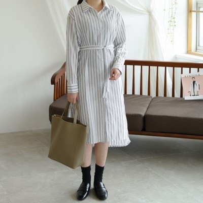 윈스 스트라이프 셔츠원피스 심플한 디자인의 스트라이프 셔츠원피스를 소개해드릴게요 캐주얼룩부터 여성스러운룩까지 어떠한 룩도 연출가능한 원피스로 추천드리고 있어요 까끌함이 없는 소재로 이너없이 단독으로 입으셔도 되는 상품으로 불편함 없는 편안함 착용감을 선사해 드리는 원피스에요 같이 구성되어 나온 스트랩을 허리에 묶어서 연출해주시면 또 다른 느낌으로 연출이 가능한 셔츠원피스에요 스트라이프 패턴으로 날씬해보이는 효과가 있는 제품이고요 품이 넉넉해 체형에 구애받지 않고 많은 분들이 착용하실 수 있어요 베이직한 디자인의 셔츠원피스로 매력적인 룩을 완성해보세요 / ivory