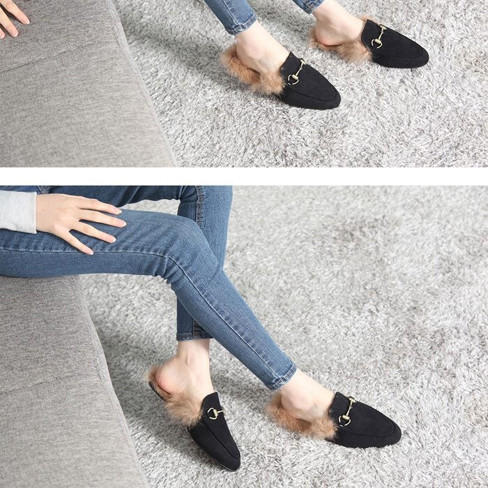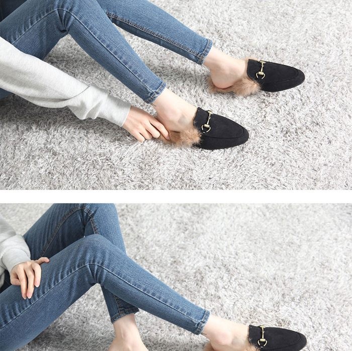 商品名:バブーシュ レディース ペタンコ フェイクファー 裏起毛 2017 秋冬 ファッション 靴 婦人靴