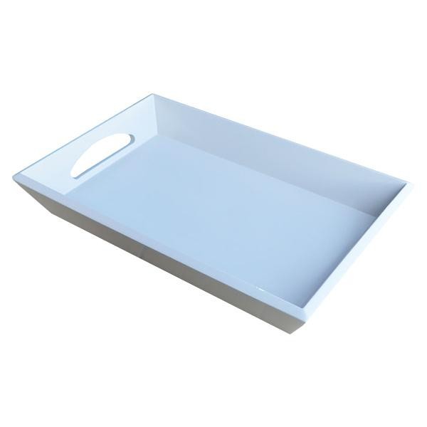 シックなグレーのスクエア型木製トレイ。テーブルにサーブするにもちょうどいいサイズ感で日常使いに最適です。