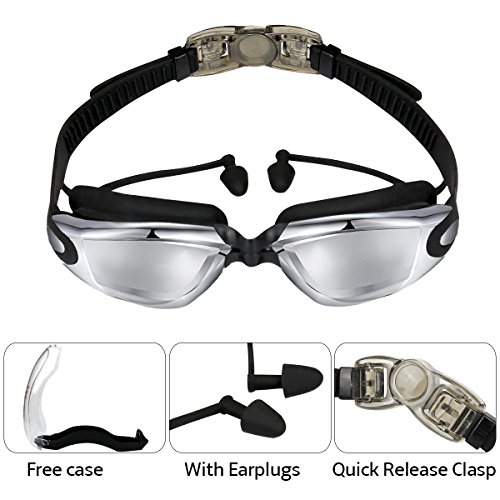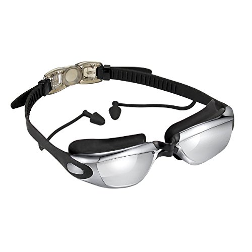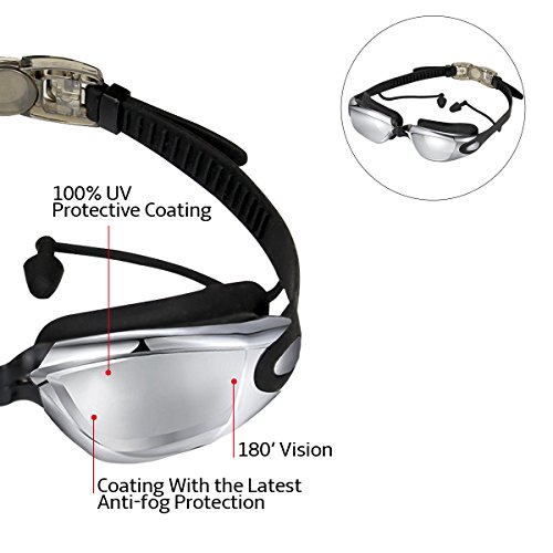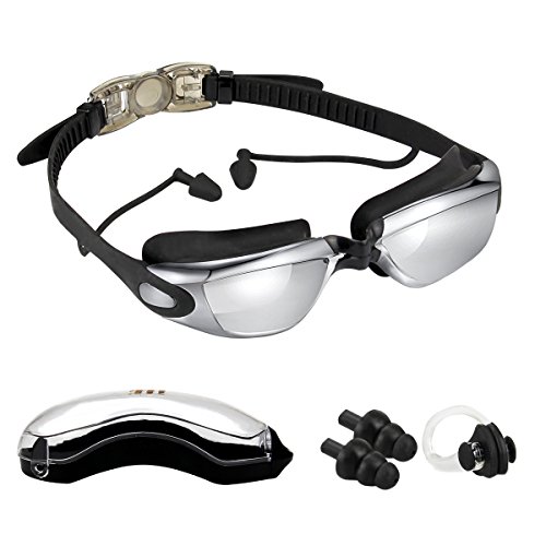 RUNFON Swim Goggles with Earplug, Anti-Fog,UV Protection Mirror Swimming goggles for Adult Men Women Youth Kid Child,Swim Goggles + Case + Nose Clip + Ear Plugs …