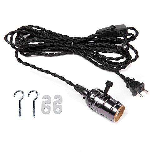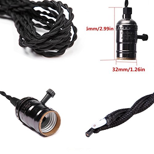 - ▶▶4.5M(14.8FT)Twisted Black Cloth Cord,18 gauge wire twisted cord with 2 conductor.There is a on/off switch at the 1.5 m (4.92ft) from the plug.