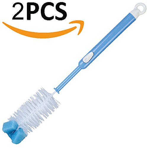 - ADJUSTABLE LONG HANDLE - The Bottle Brush Cleaner With the special button, you can adjust the length of the handle , 15-18.5Inch (38-47CM) ,easy to get the sides and corners, Ideal for cleanng sports bottle, long cups ,