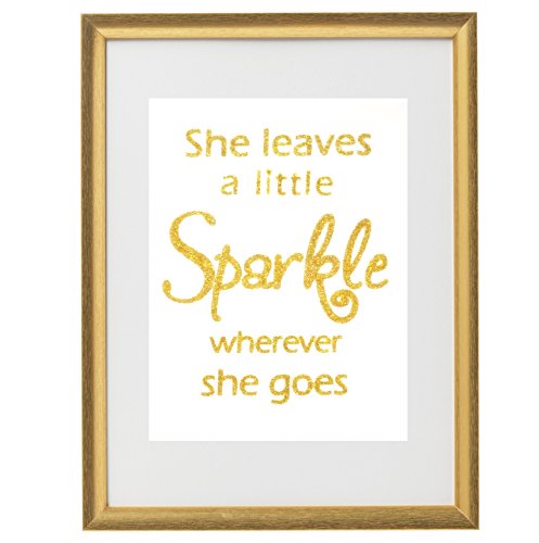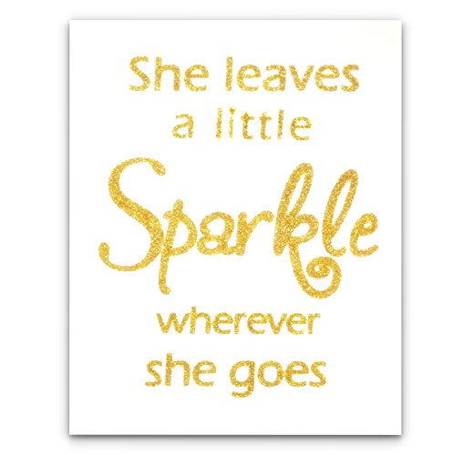 "She Leaves a Little Sparkle Wherever She Goes" Gold Glitter (Real Glitter!) 8x10 Canvas Panel (Frame Not Included) Perfect Girl's Nursery Room Decor Girl's Bedroom Decor Gift for Girls Gold Decor