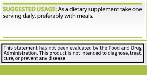 SUGGESTED USAGE: As dietary supplement take one serving daily, preferably with meals.