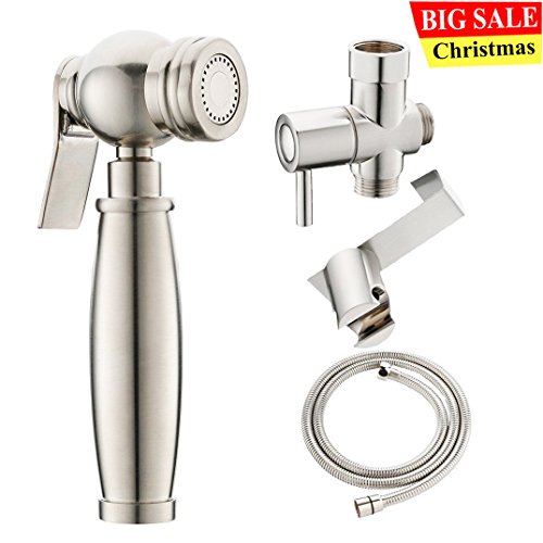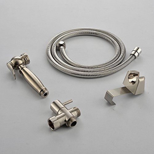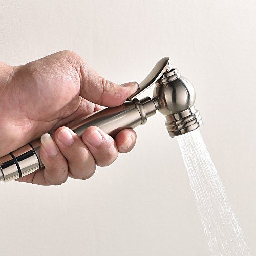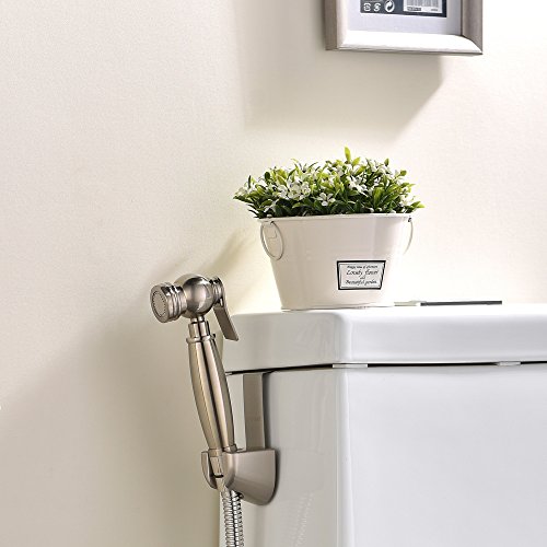 VAPSINT Premium Brass Hand Held Brushed Nickel Baby Cloth Diapers Bidet Sprayer, Include 1.5M Stainless Steel Metal Hose and Mounting Clip Attachment Adapter Toilet Sprayer