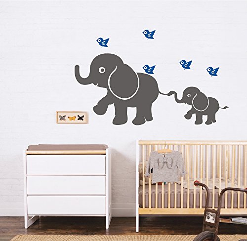 -. Title : MAFENT(TM) Mother and Baby Elephant wall decal with Birds Play around Removable DIY Vinyl Wall Sticker for Baby Nursery Room Decortion(Grey and Blue,21’’x34’’)