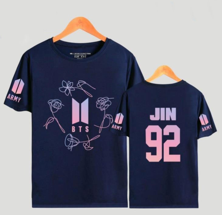 防弾少年団花柄ARMY半袖バックナンバーTシャツネイビーピンク