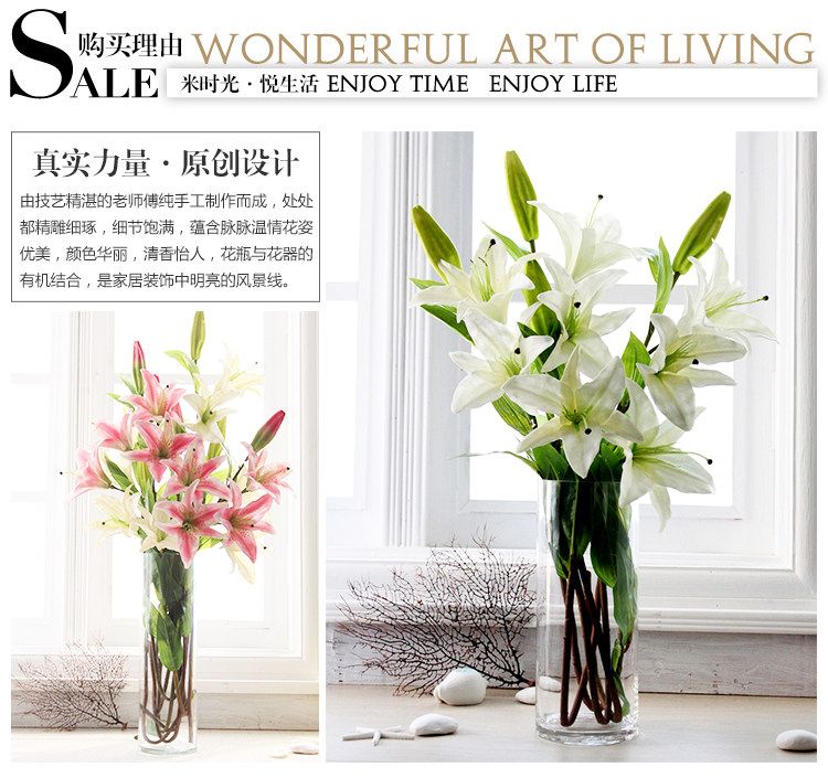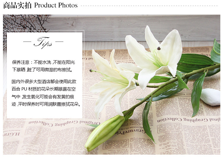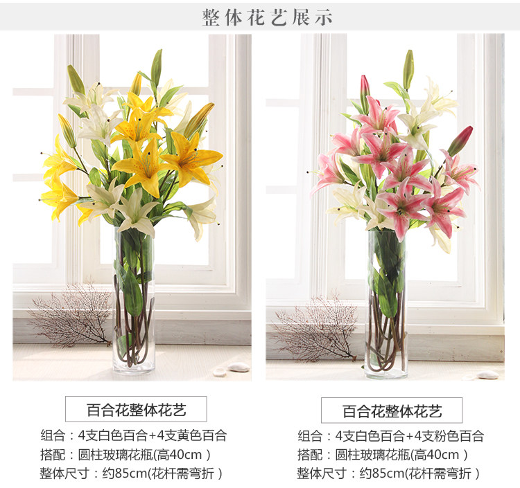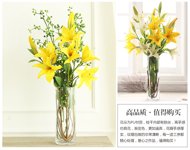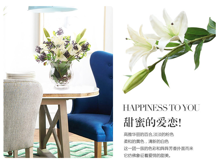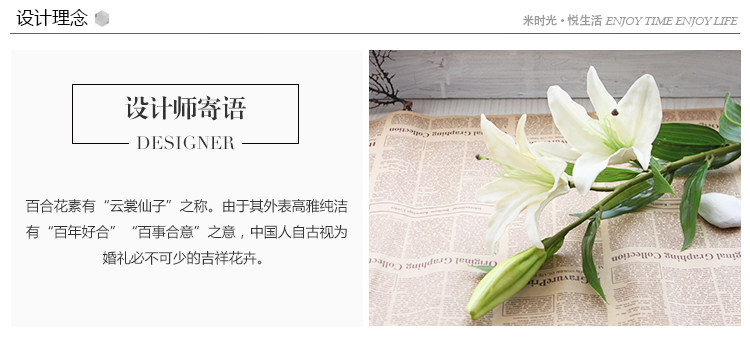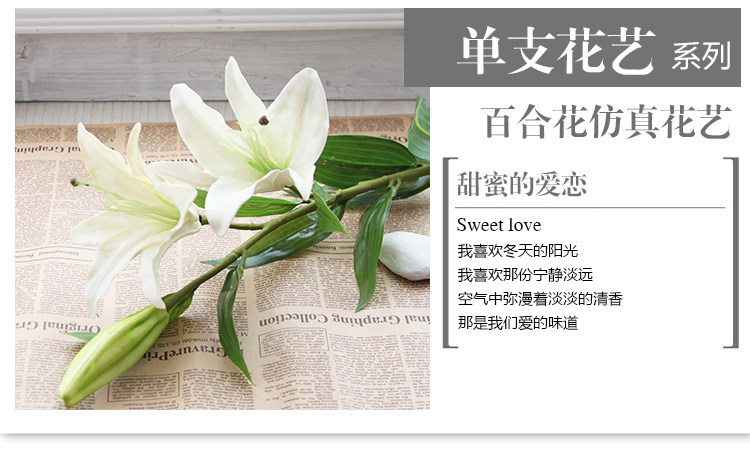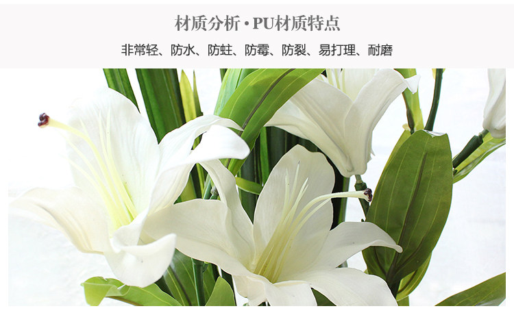 米子家居 客厅卧室装饰花落地仿真花假花 PU材质花束单支百合