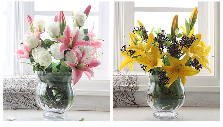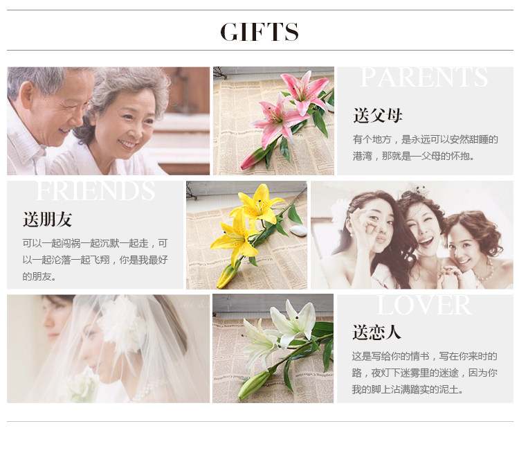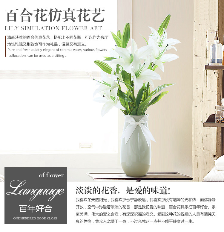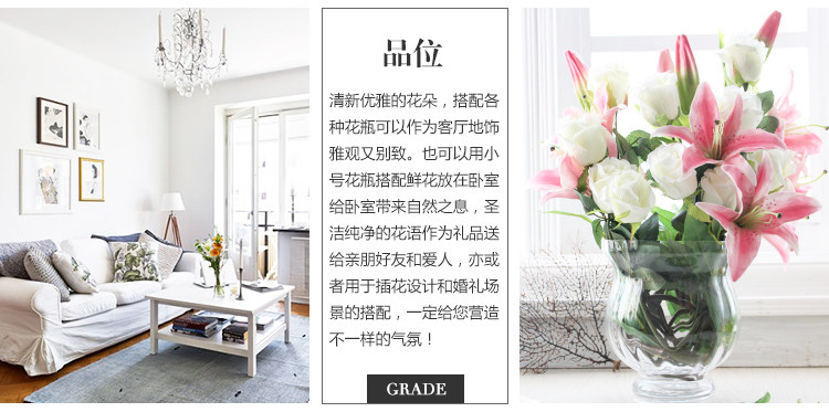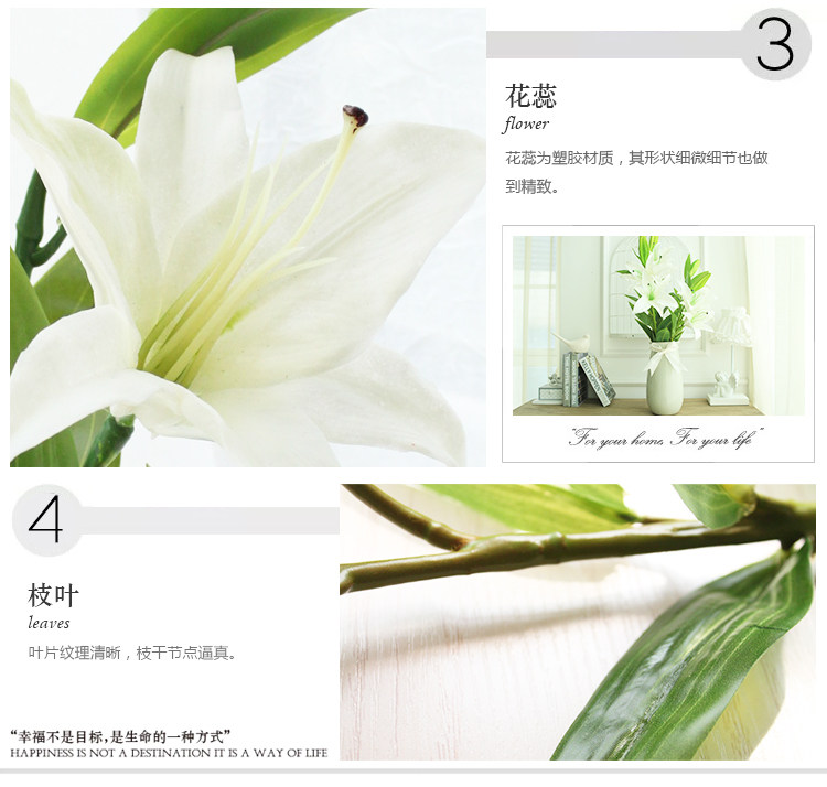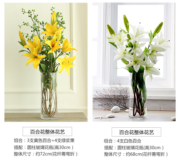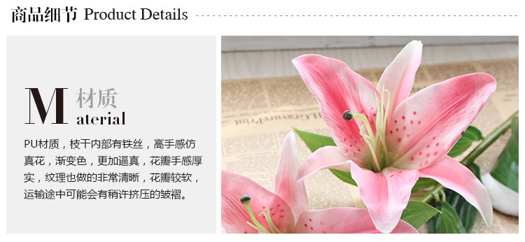 米子家居 客厅卧室装饰花落地仿真花假花 PU材质花束单支百合