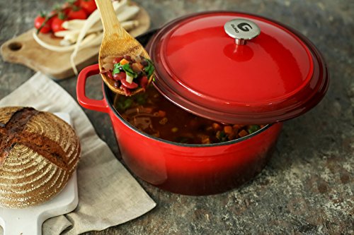 Before cooking: - Carefully wash and dry the cookware. - If you are cooking on an electric/glass/ceramic stove, always lift the cookware to change its position in order to prevent scratching the stove-top. - Stacking, dropping and bumping your enamel-coated cookware can cause chipping on the surface. - Placing metallic objects inside your microwave is a recipe for disaster. Use your oven instead, and make sure not to exceed 500°F. - Cooking outdoors? Perhaps not the best idea if your cookware is enamel coated. Avoid using it in campfires and outdoor grills to avoid discoloration of the enamel. - Acidic foods may stain or discolor the enamel, however, this does not harm or change the quality of the cookware. Maintenance & Care - Many cooking techniques require stirring the food. Make sure to use non-metallic utensils to prevent scratches on the inside enamel layer of your cookware. - Once you are done cooking let your cast iron cool down before washing it. Then, although dishwasher safe, it is better to use soap and warm water to clean it thoroughly. Avoid using any form of citrus cleaners. - Dry the cast iron by either using a towel or by warming it up to vaporize the remaining water from the surface. - Avoid drastic temperature changes over short periods of time to prevent fracture in your cookware. Make sure to warm it up and cool it down gradually. - Your Guro cast iron product is an energy saver; use a low flame until the required temperature is achieved. - Gaining some tough stains? Try rubbing them off using baking soda and a cloth. Still not coming off? Bleach should be able to eliminate anything else.Feature