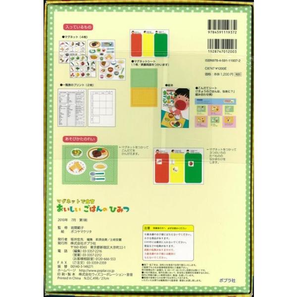 【商品基本情報】 商品名称:マグネットで食育おいしいごはんのひみつ 著者/出版社:あそんでわかる食育絵本!/あそんでわかる食育絵本! 初版発行日:2010/07/01 サイズ:A4変判 ページ数:32 ISBN/JAN:9784591119372/4528189408715