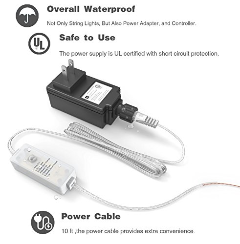 - Totally Weatherproof for Outdoor Use : All parts are waterproof , Not only the cooper wire lights ! The power adapter and IR controller are UL approved to be weatherproof for outdoor use .
