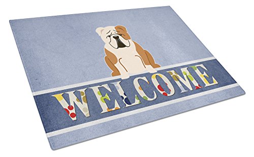 Caroline's Treasures English Bulldog Fawn White Welcome Glass Cutting Board Large, Multicolor