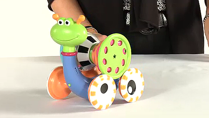 Adorned with interactive and soothing tags babies love to explore; crinkle paper and squeaker inside fabric add to the sensory fun