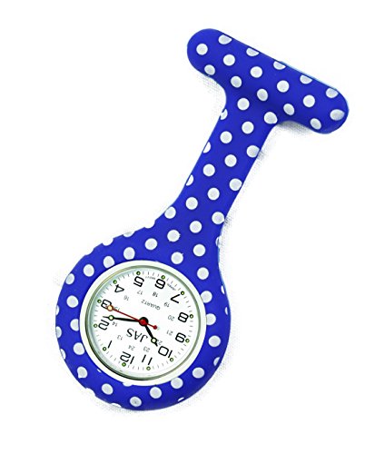 JAS Unisex Nurses Lapel Watch Silicone (Infection Control) Polka Dot - Navy Blue